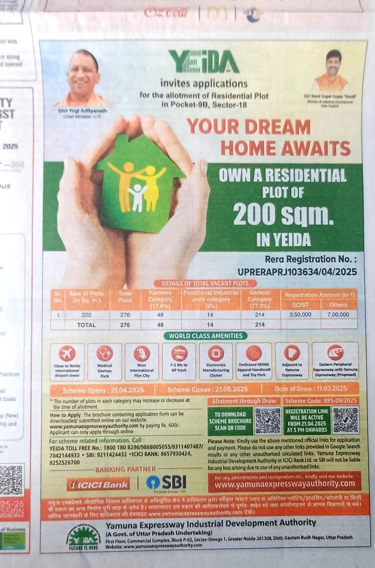 YEIDA Residential Plots Scheme RPS09 2025, Yamuna Expressway